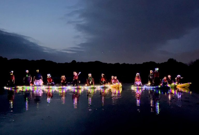An evening paddle when we light up all the paddle boards, kayaks and water bikes.